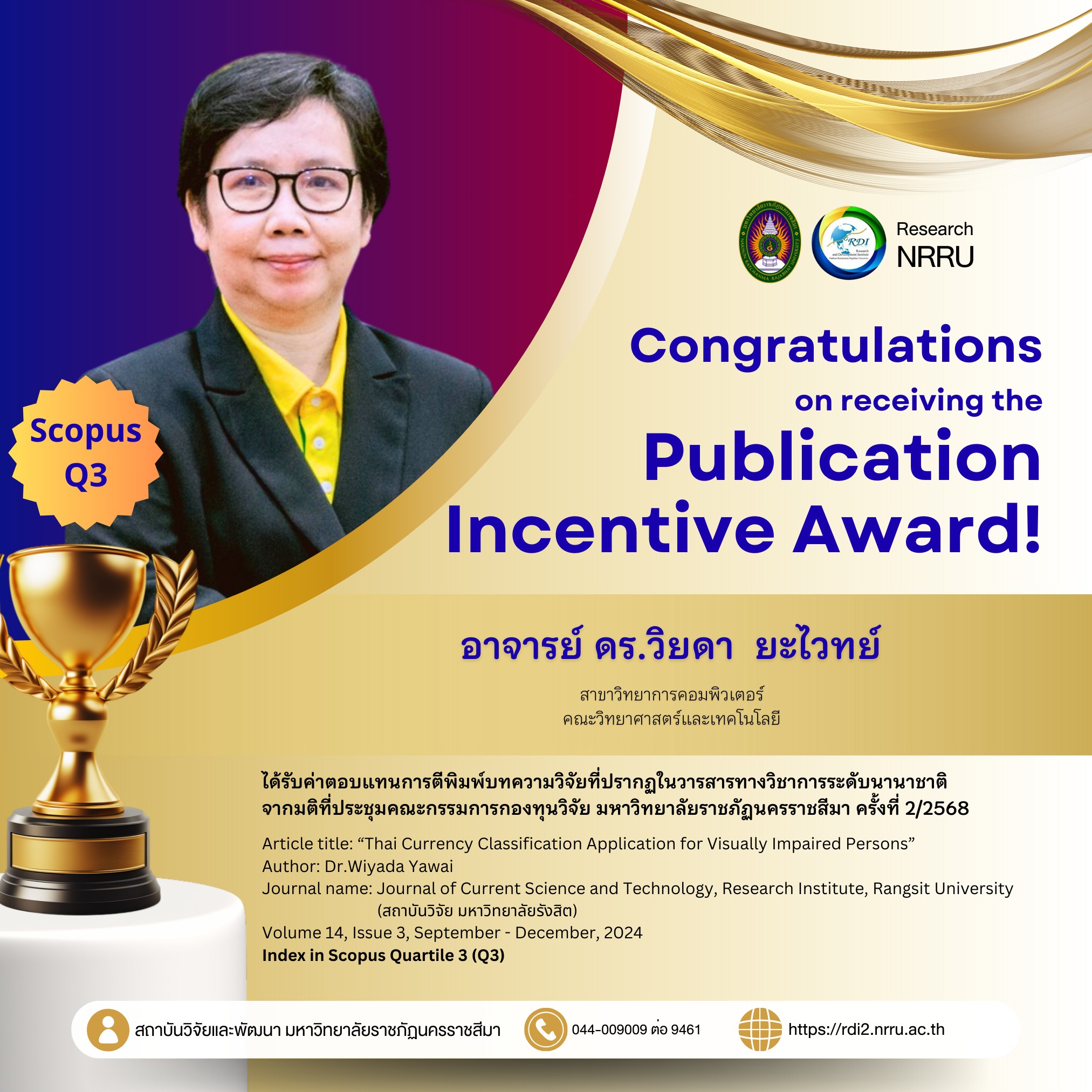 เจ้าของบทความวิจัยชื่อเรื่อง “Thai Currency Classification Application for Visually Impaired Persons”
